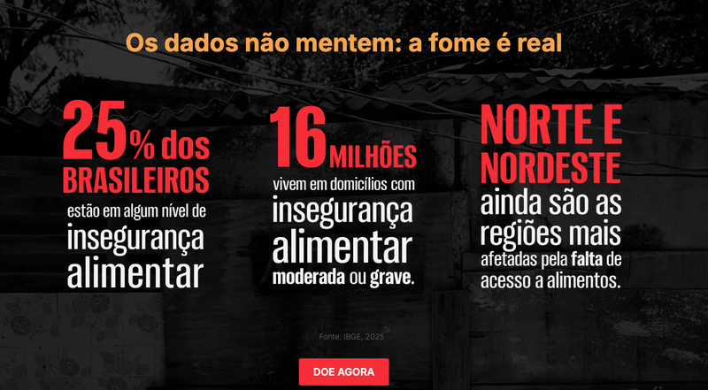 Milhares de famílias enfrentam a escuridão do prato vazio.Sua doação acende a luz de um Natal possível para elas: um Natal Sem Fome.