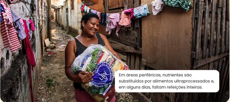 Em áreas periféricas, nutrientes são substituídos por alimentos ultraprocessados e, em alguns dias, faltam refeições inteiras.
